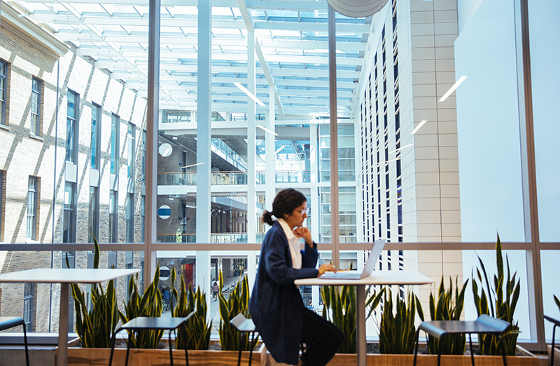 To help optimize the building’s energy use, the MaRS Centre has installed a smart HVAC automation system. The building also uses technology from Airgenuity, which has sensors in the exhaust air stream that detects if there’s anything harmful in the air and automatically adjusts how much air is vented out of a lab environment, cutting down energy use and emissions. There are plans in the works to install a large battery array from Toronto venture Peak Power, which was in the initial Mission from MaRS: Climate Challenge. Its energy storage system will allow the Centre to take the load off the grid during the summer. The MaRS Centre is also aiming to be the site of one of the pilot projects with the Better Buildings initiative. “When innovators and building operators can link up to work toward a shared goal of reducing carbon, it’s a win-win,” says Froebelius.