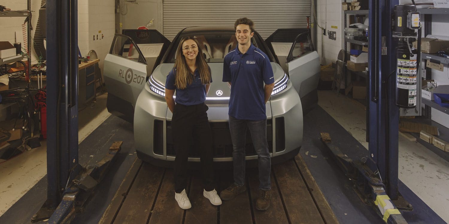 When it comes to the transition to electric vehicles, Canada has a need for speed. With Project Arrow — the creation of Canada’s first zero-emissions electric vehicle — Ontario Tech University engineering students Izzy Cossarin, 21, and Andrew Genovese, 22, were able to see just how quickly innovators can mobilize when there’s an all-hands-on-deck approach. The students worked on almost every component in the high-tech vehicle, which features 25 new made-in-Canada technologies, including facial recognition software and a solar-powered sunroof.