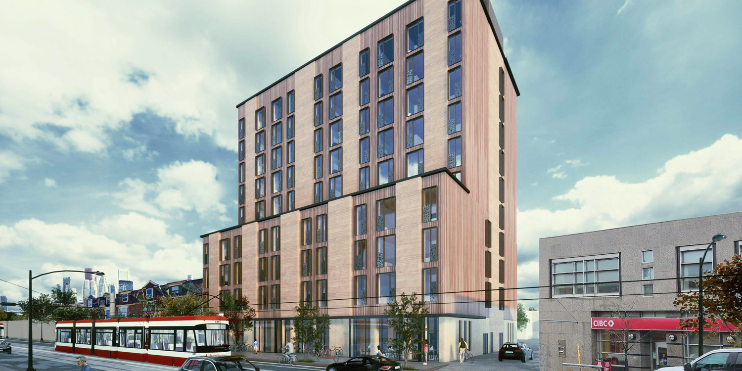 That’s the idea behind a 100-unit rental complex at Dundas and Ossington that’s in pre-development. “With mid-rise mass timber, you can deliver the scale and still build fast enough to really move the needle on housing needs,” says MacMillan. The project’s other green benefits include a geo-exchange system for heating and cooling, a green roof and bike parking.