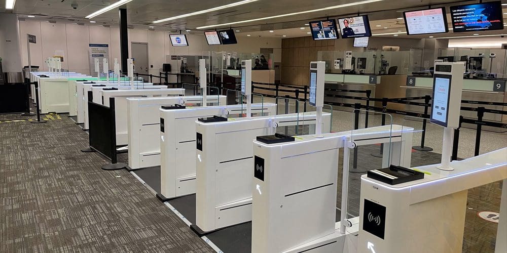 Similar technology is now being tried here. In March, the Canada Border Services Agency wrapped up a test project at Pearson that saw some airline crew use a mobile app to submit their customs declarations and travel documents instead of showing their passports on arrival. And in June, a dozen automated eGates were installed in the arrivals area of Pearson’s Terminal 1 to speed up passport control, the first time they have been used in Canada for border clearance. The devices use facial confirmation technology to verify that the passenger matches the passport they placed on a reader.