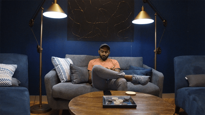 In the wellness room, there are yoga mats and foam rollers, as well comfortable couches for brainstorming.