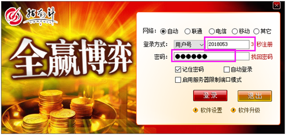 完成安装后,将自动弹出登录界面,输入卡号与密码后,即可使用